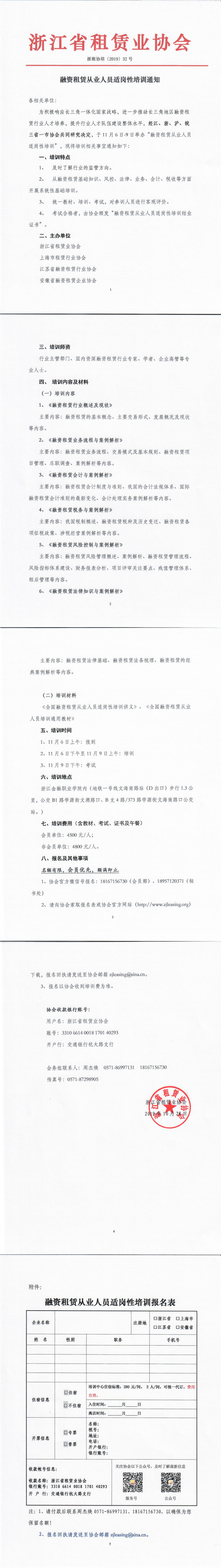 浙江省租赁业协会关于举办汽车融资租赁实务操作培训的通知