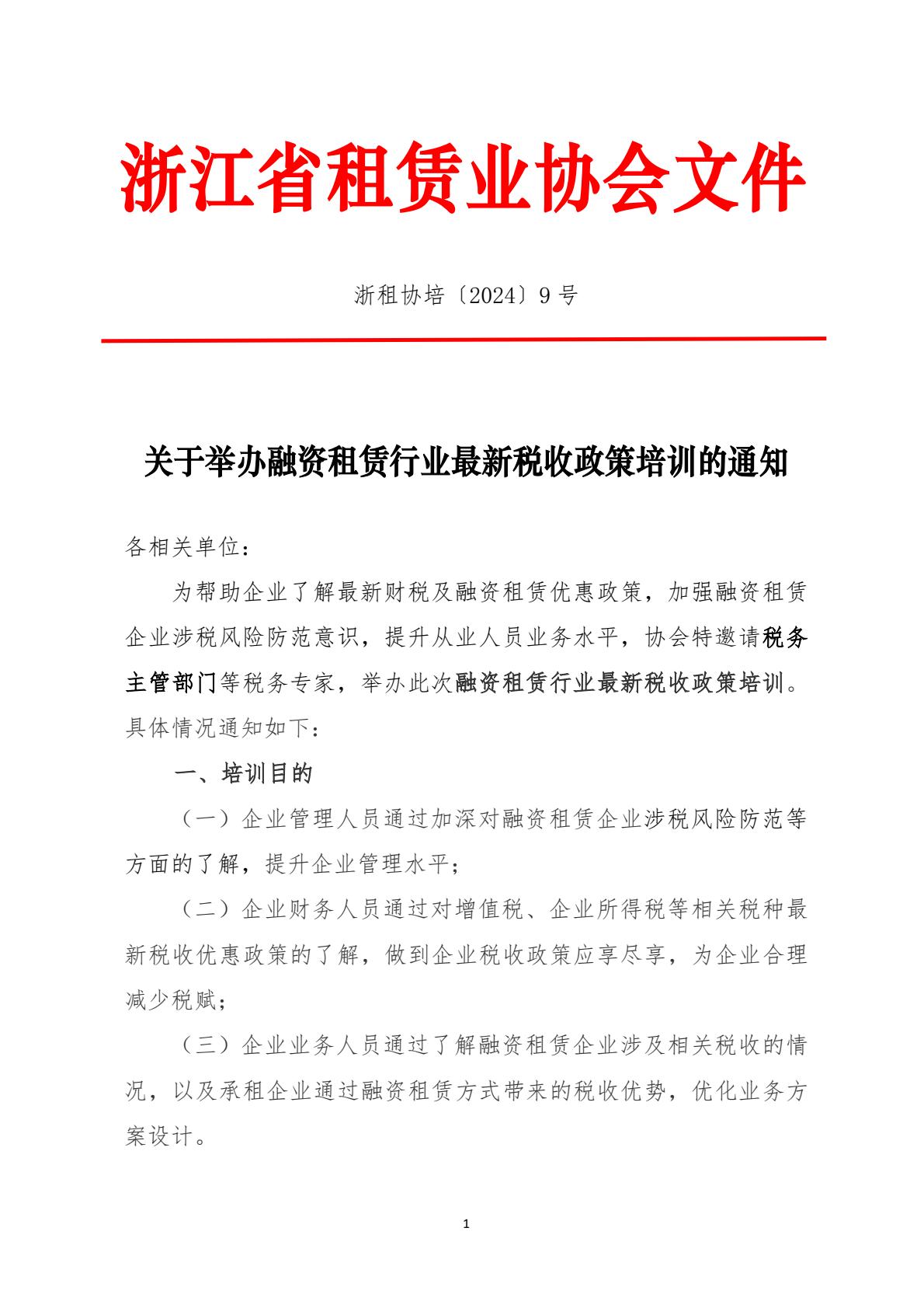 关于举办融资租赁从业人员适岗性培训(第十五期)的通知
