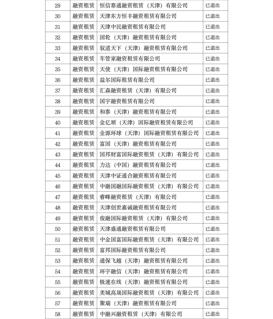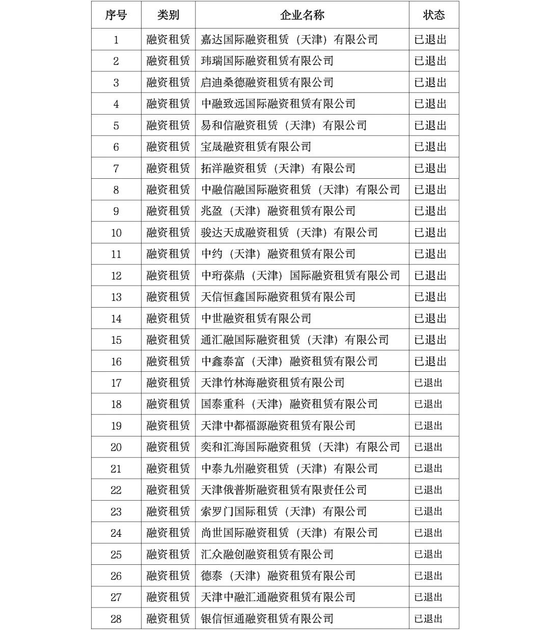 天津市公布2025年第二季度61家融资租赁公司退出名单 |