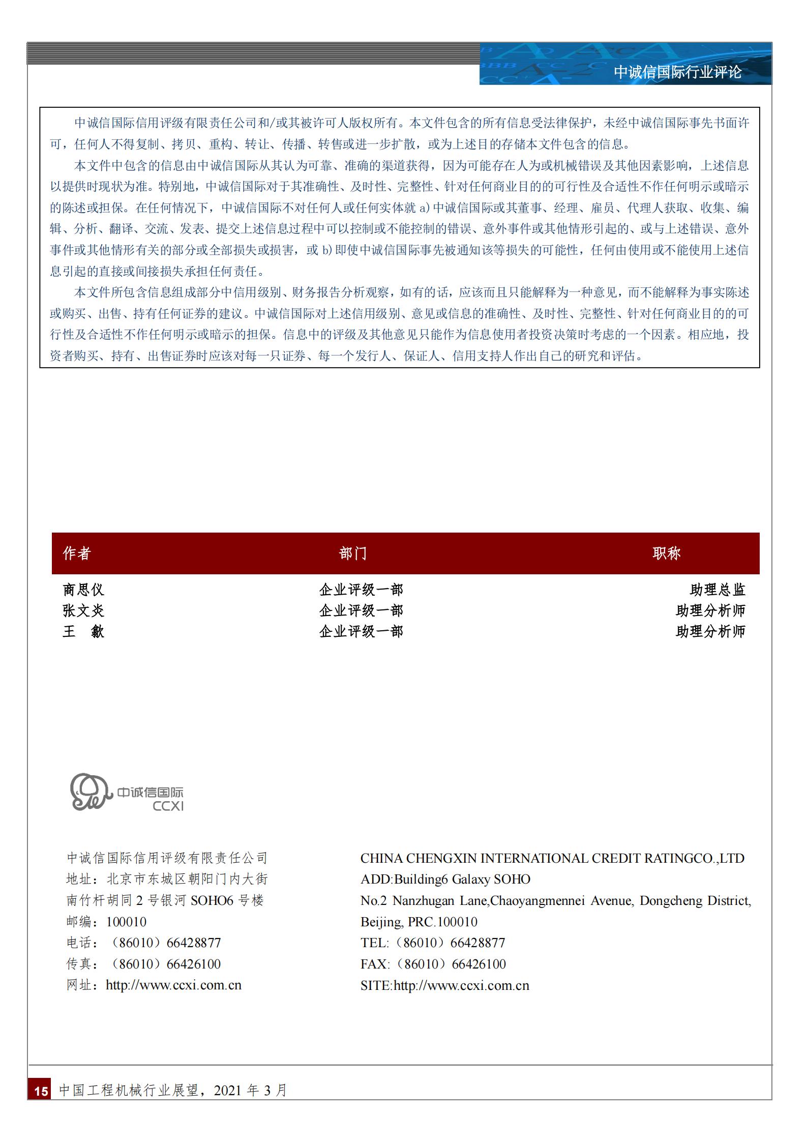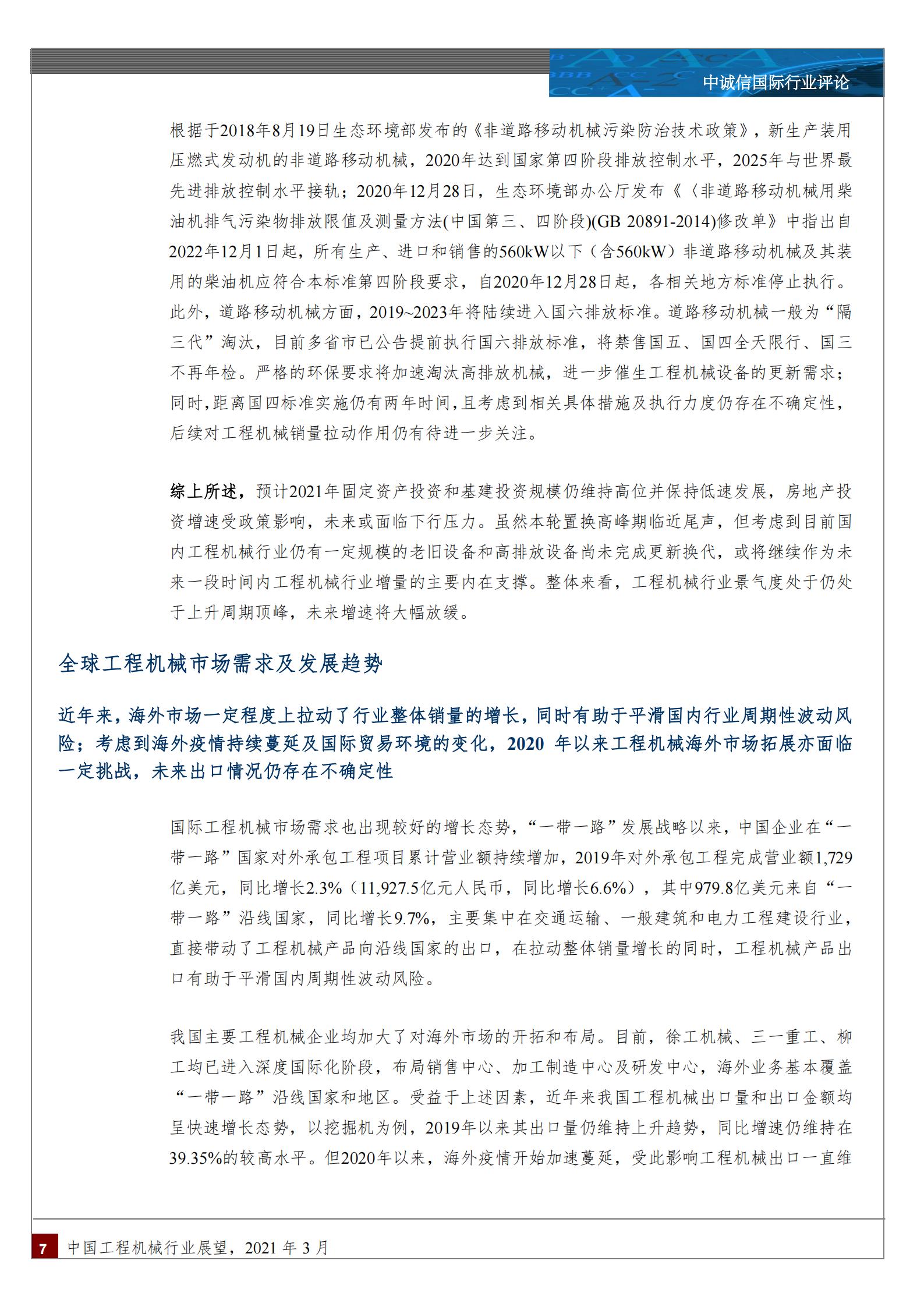 中诚信专栏 丨 中国工程机械行业展望