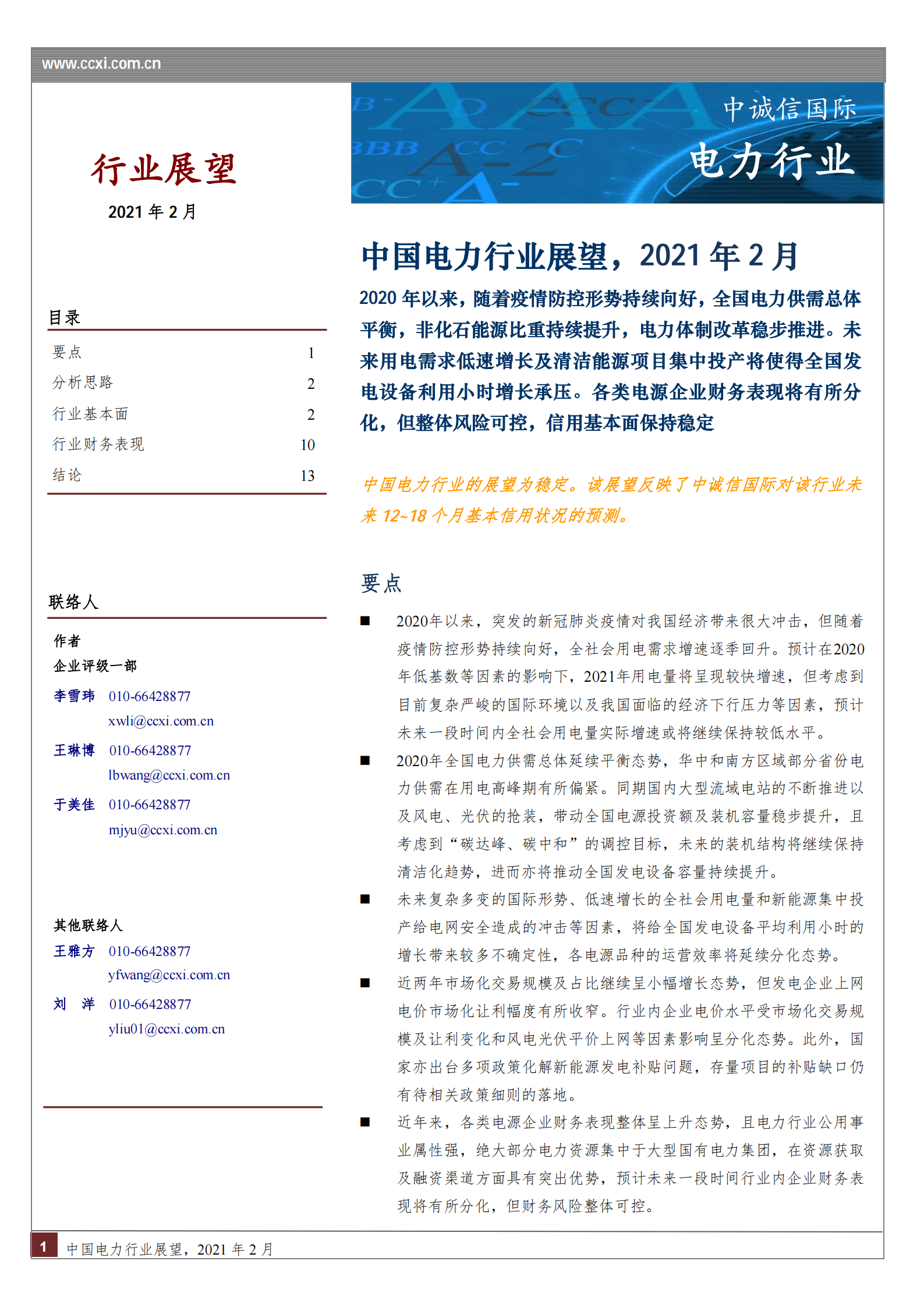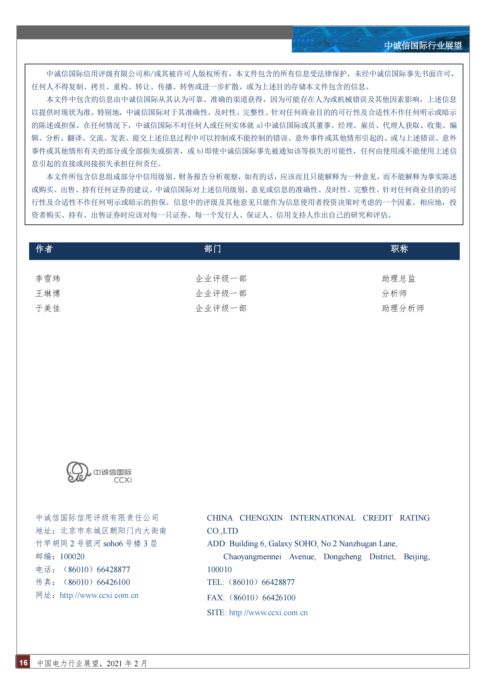 | 中诚信专栏 丨中国电力行业展望 |