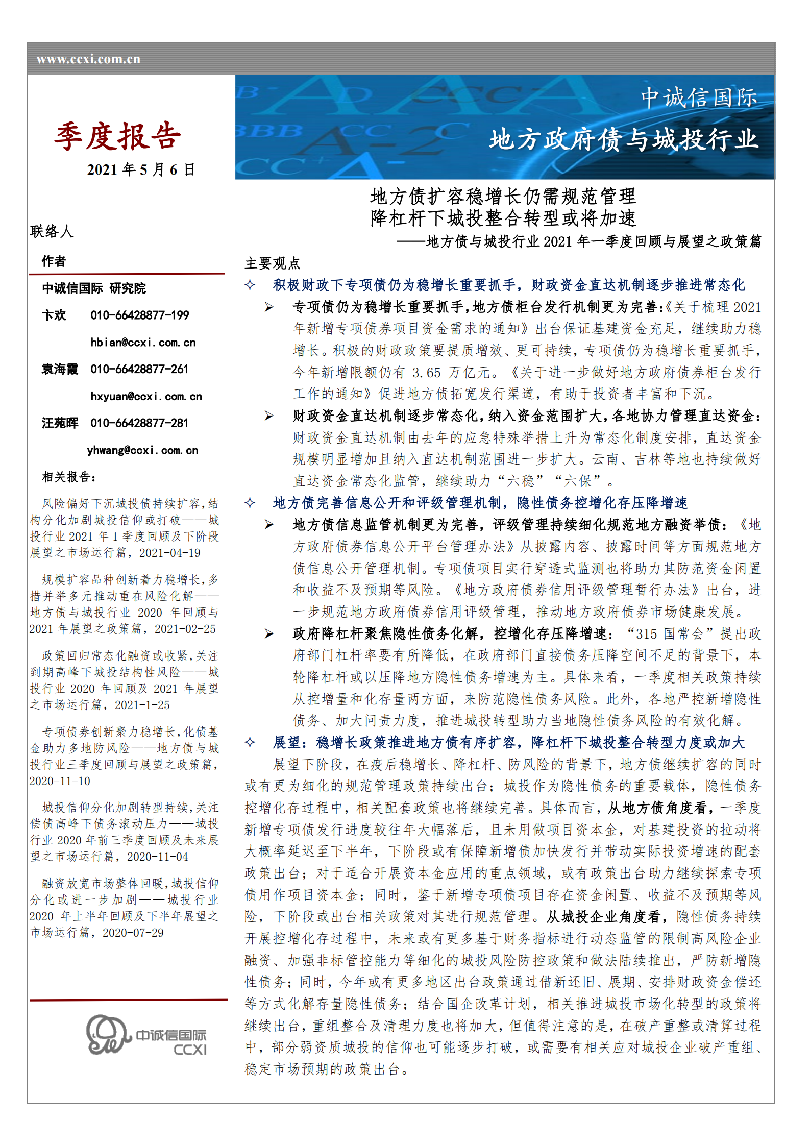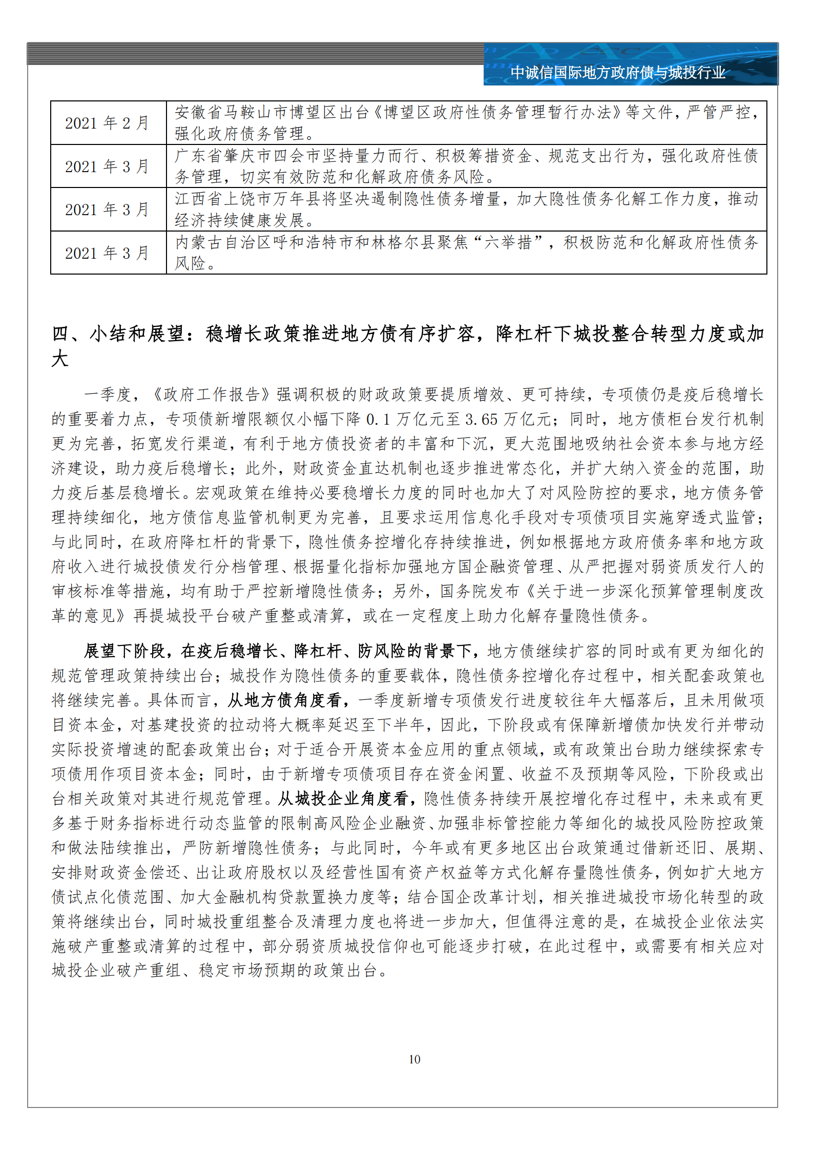 中诚信专栏 丨地方债与城投行业2020年一季度回顾与下阶段展望之政策篇