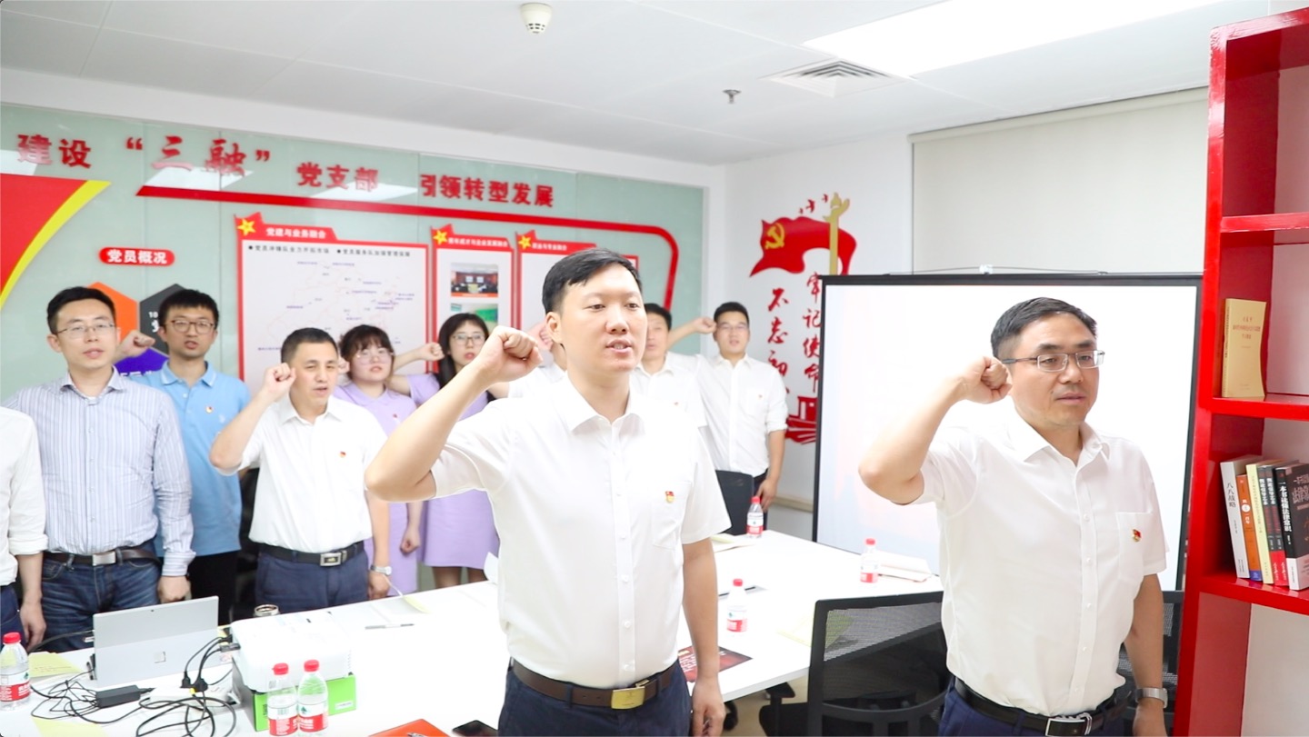 6月20日,在上海璞能融资租赁公司新创建的党员活动室,党支部书记施云峰带领新党员和全体正式党员面对鲜红的党旗,庄严宣誓,再一次接受党性的洗礼,重温入党的决心和信念,进一步鞭策和激励大家牢记党员使命,坚定理想信念,立足岗位建功立业。