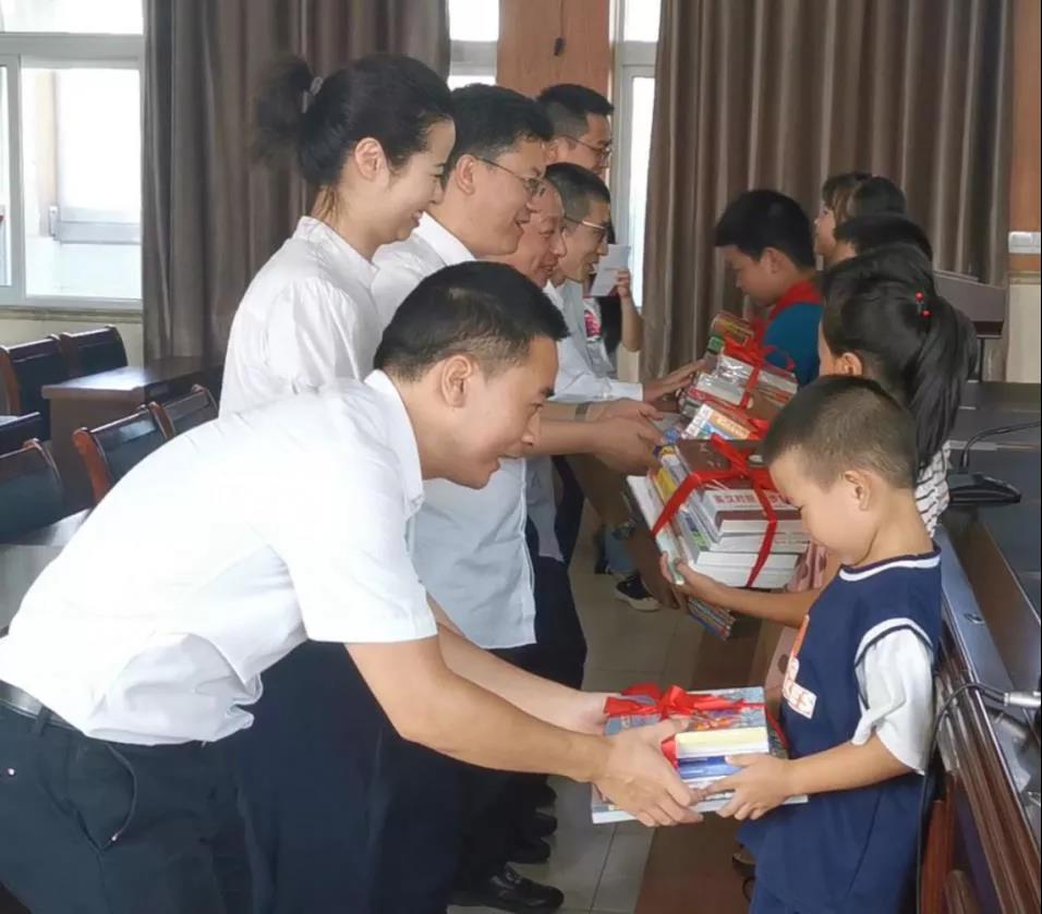 活动第一站,党员们来到大陈小学开展“追寻垦荒足迹 共话垦荒‘金’神”志愿服务活动,以实际行动为群众办实事。台州市金投集团党委委员、台州市金控租赁公司党支部书记庞晓锋和台州市融资担保公司党支部书记方宁,为学生代表们送上1-6年级的小学生必读书籍和幼儿绘本,并与学生代表亲切交流,勉励他们要传承父辈精神。学生们收到书籍后,表示要好好学习,奋发图强,将来要做一个有用的人,回报社会。