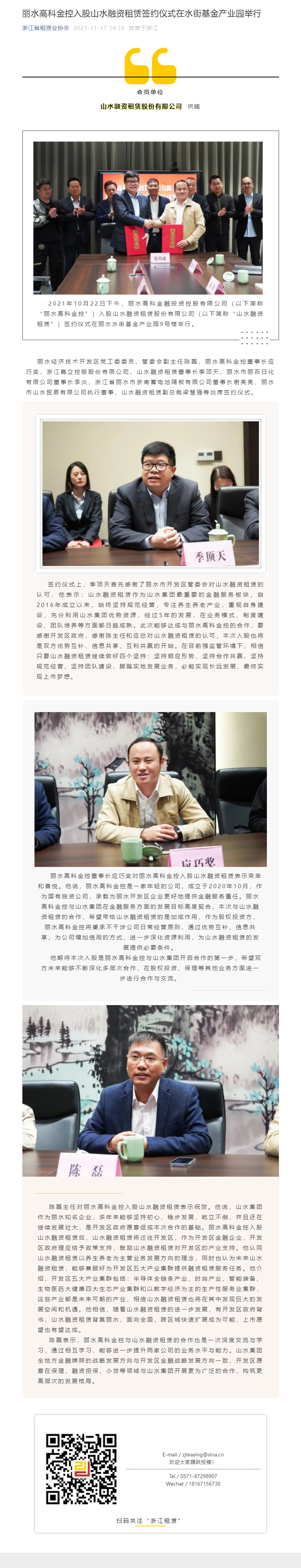 丽水高科金控入股山水融资租赁签约仪式在水街基金产业园举行