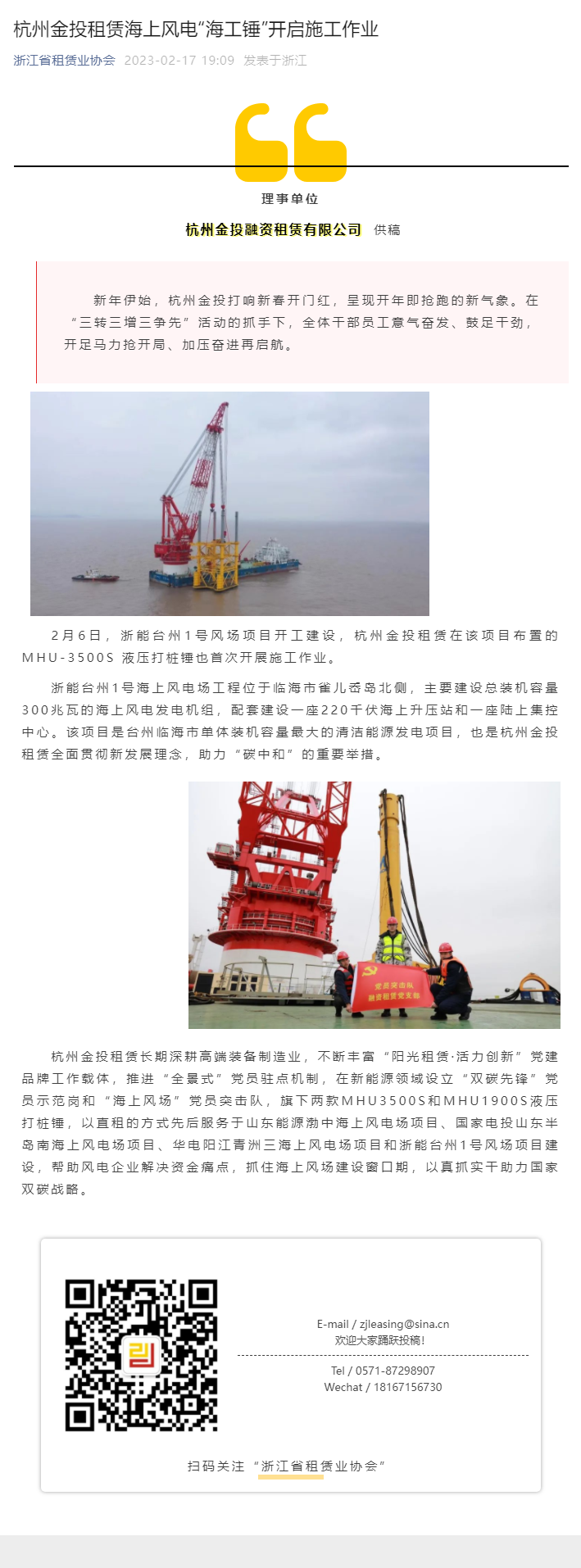 杭州金投租赁海上风电“海工锤”开启施工作业