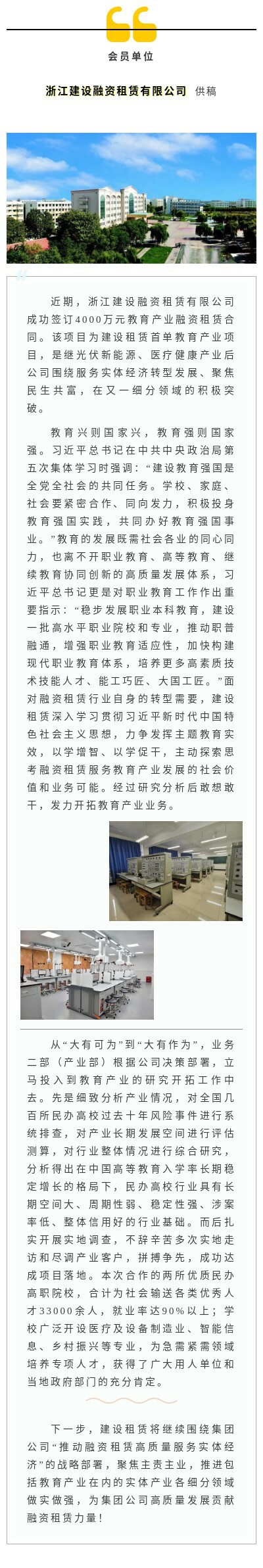 续写转型新篇 助力教育强国 建设租赁实现教育产业项目“零突破”