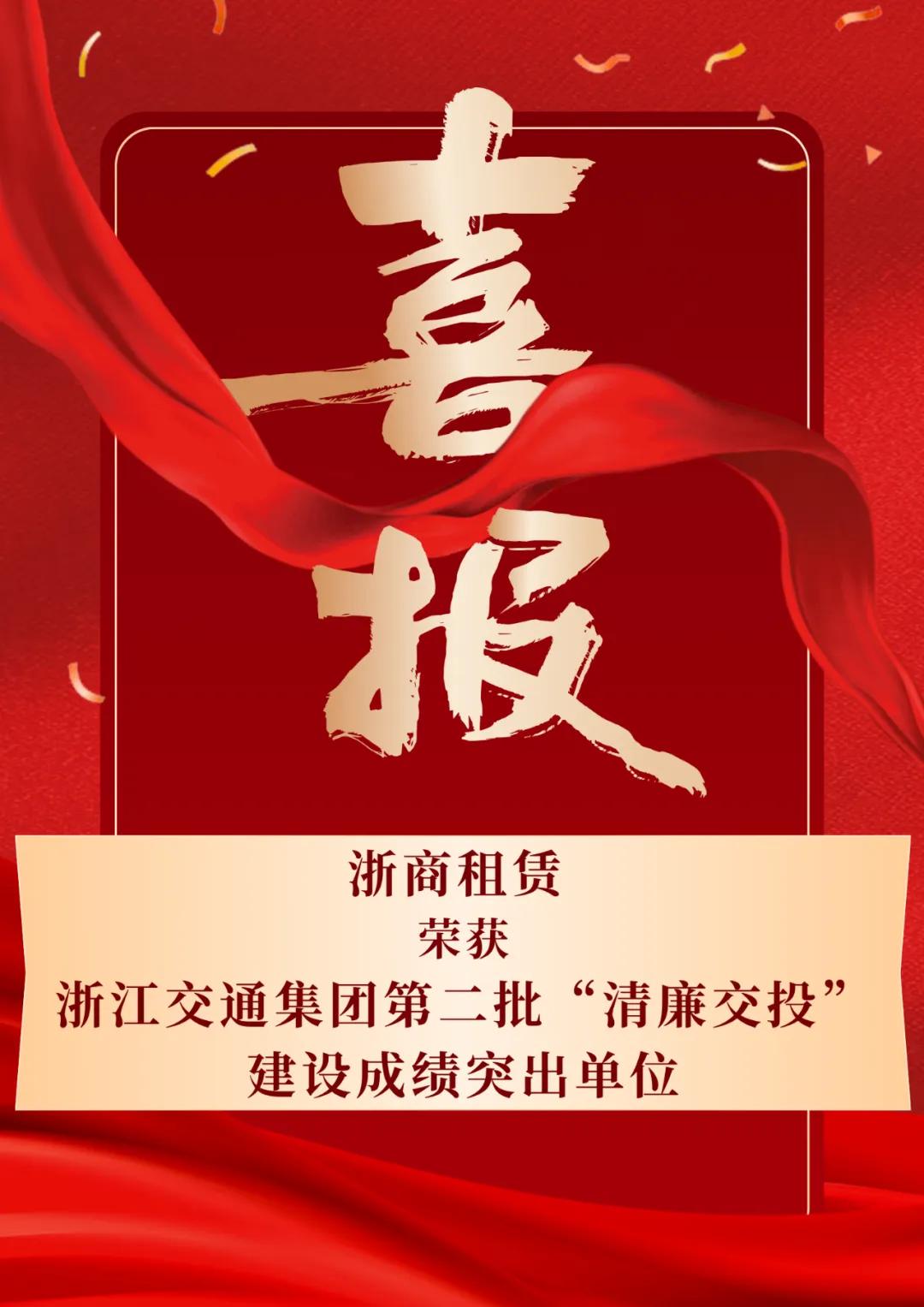 喜报|浙商租赁荣获浙江交通集团第二批“清廉交投”建设成绩突出单位