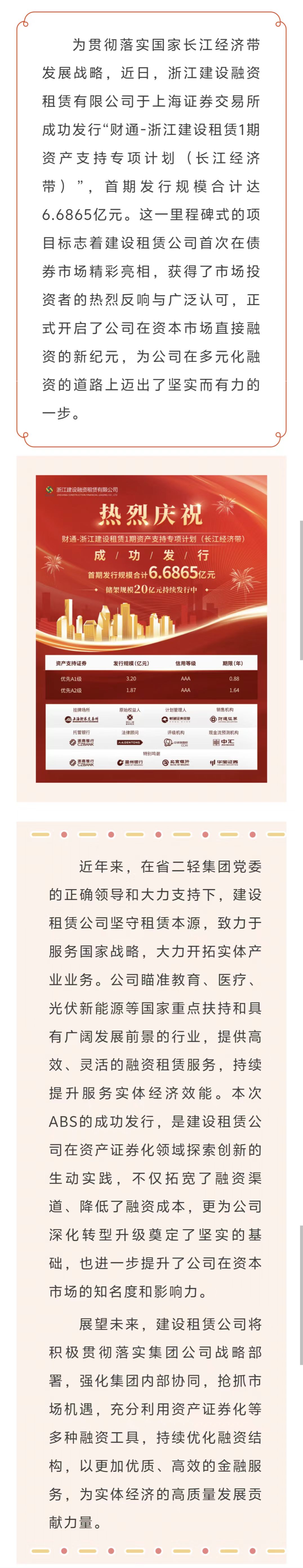 http://www.zjleasing.org | 更新时间:2024-11-01 | 来源: 浙江建设融资租赁有限公司公众号 | 阅读:1441次