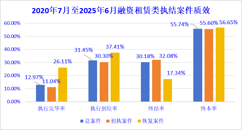 从执行质效来看,融资租赁类执行案件平均执行到位率仅为30%左右,案件执行难度较高,以终结执行和终结本次执行程序方式结案的案件较多,后续管理压力较大。