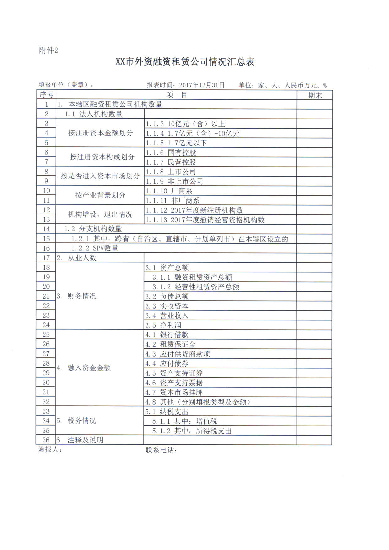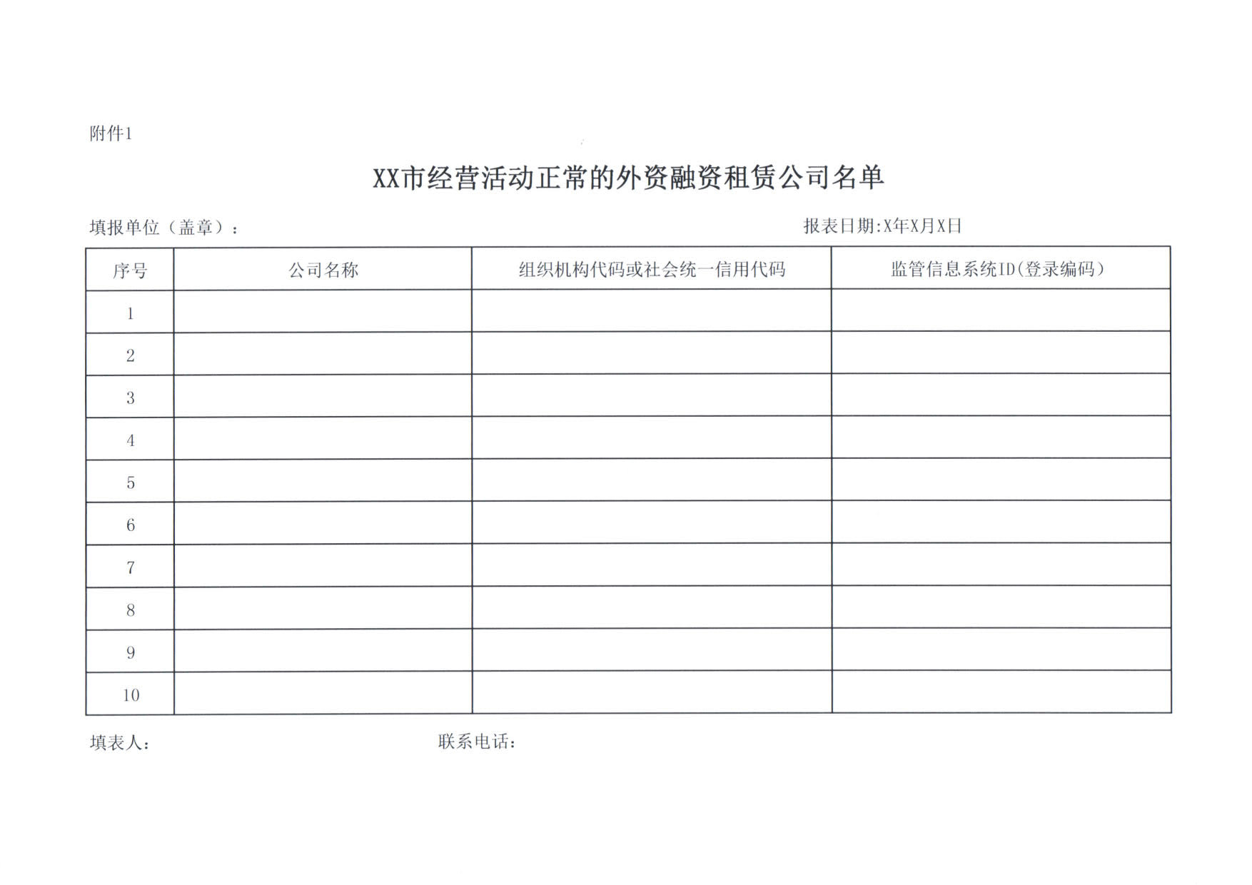 附件: 1.《XX市经营活动正常的外资融资租赁公司名单》 2.《XX市外资融资租赁公司情况汇总》