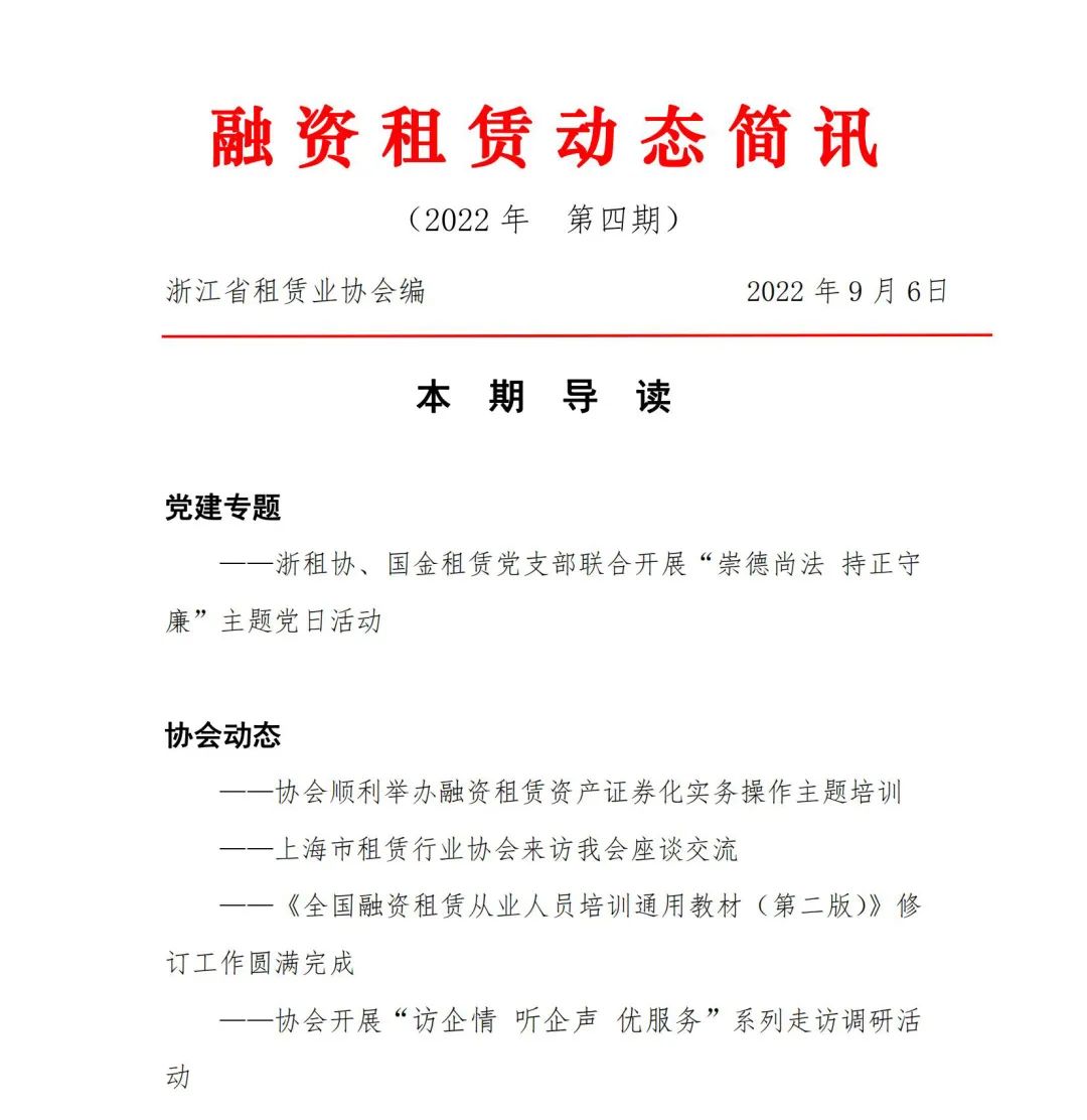 融资租赁动态简讯(2022年 第四期)