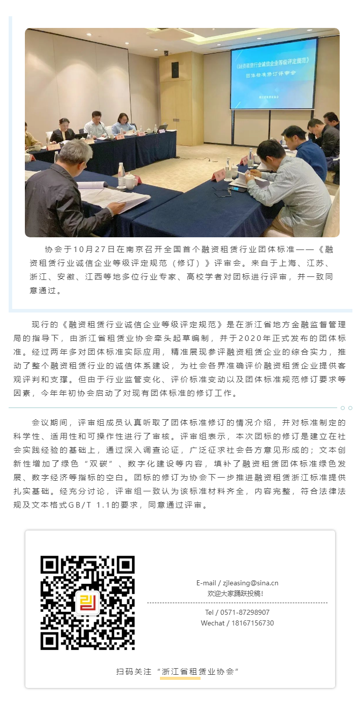 《融资租赁行业诚信企业等级评定规范(修订)》 团体标准顺利通过专家评审