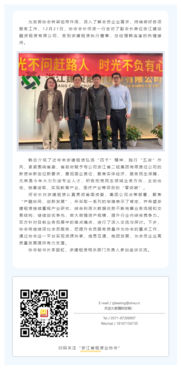 协会走访调研浙江建设融资租赁有限公司