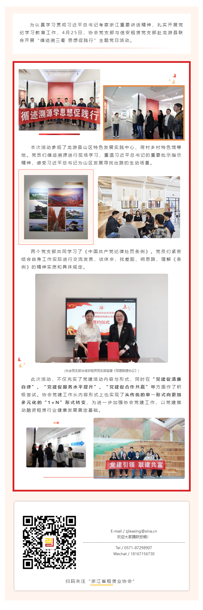 协会党支部与信安租赁党支部联合开展 “循迹溯三衢 思想促践行”主题党日活动
