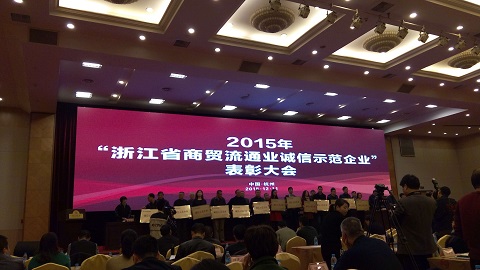 12月11日,由浙江省商贸业联合会主办的2015年“浙江省商贸流通业诚信示范企业”表彰大会在杭州举行。经过省商贸业联合会面向全省商贸流通企业近一年的宣传动员、申报受理、考察审核、评审公示,全省共99家商贸流通企业入选“浙江省商贸流通业诚信示范企业”。我会会员企业荣年融资租赁(中国)有限公司入选。 我会根据评选文件要求,结合评选条件认真筛选,对照行业具体实际,最终确定会员企业荣年租赁为我会推荐对象。通过协会与企业的共同努力,荣年租赁最终得到了专家组、评选委员会和大众的认可,获得“浙江省商贸流通业诚信示范企业”称号。 |