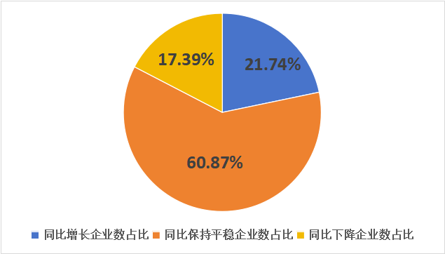 在纳税额维度,行业整体呈现显著增长态势,季度总量同比增长21.80%。样本企业中,69.57%的企业实现同比增长,8.70%的企业保持稳定。纳税额的快速增长与主营业务收入的增长趋势相符,共同体现了行业经营规模与效益的同步提升。