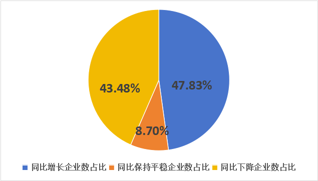 从利润总额来看,实现同比增长3.34%。结构上,39.13%的样本企业利润总额同比上升,13.04%的企业保持平稳。行业整体盈利水平有所提升,同时内部不同企业基于自身发展阶段与策略,盈利表现存在分化。