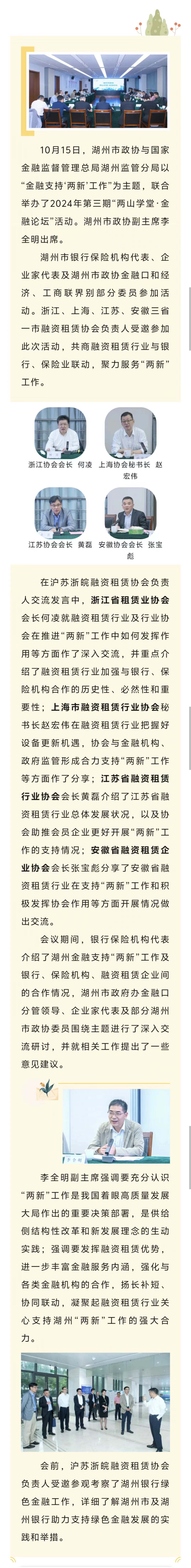长三角三省一市融资租赁协会受邀参加“两山学堂·金融论坛”活动