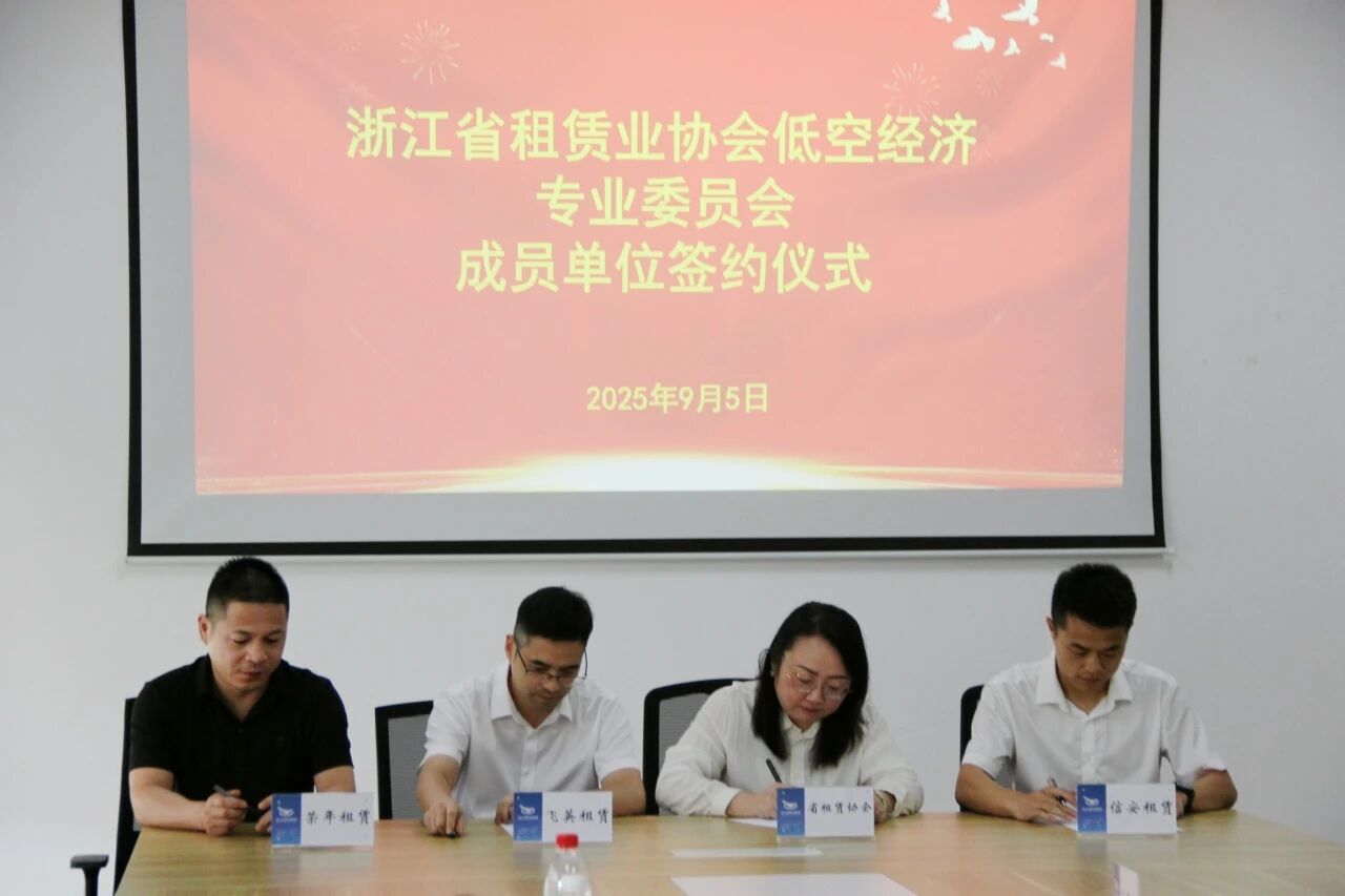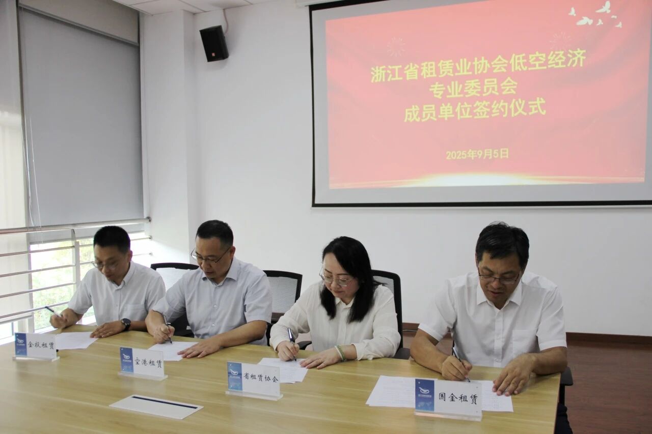 活动现场,协会与低空经济专委会首批成员单位进行了签约仪式。与浙江省空港融资租赁有限公司、浙江国金融资租赁股份有限公司、杭州金投融资租赁有限公司、浙江信安融资租赁有限公司、湖州市飞英融资租赁有限公司、荣年融资租赁(中国)股份有限公司共同签署成员单位协议,携手助推浙江省低空经济产业稳步启航。