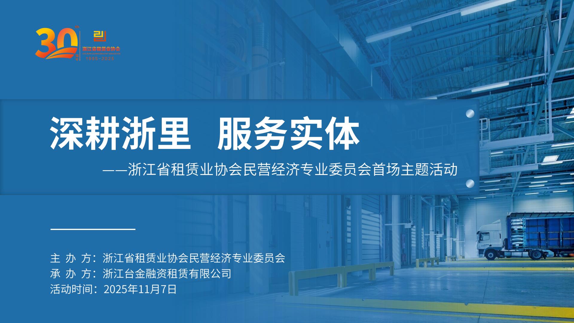 为促进会员单位间的交流协作,提升融资租赁行业服务实体经济的能力,11月7日,由浙江省租赁业协会主办、协会民营经济专业委员会(下称“专委会”)牵头单位——浙江台金融资租赁有限公司承办的“深耕浙里 服务实体”首期主题活动在台州成功举办。协会秘书长李振虹主持活动。