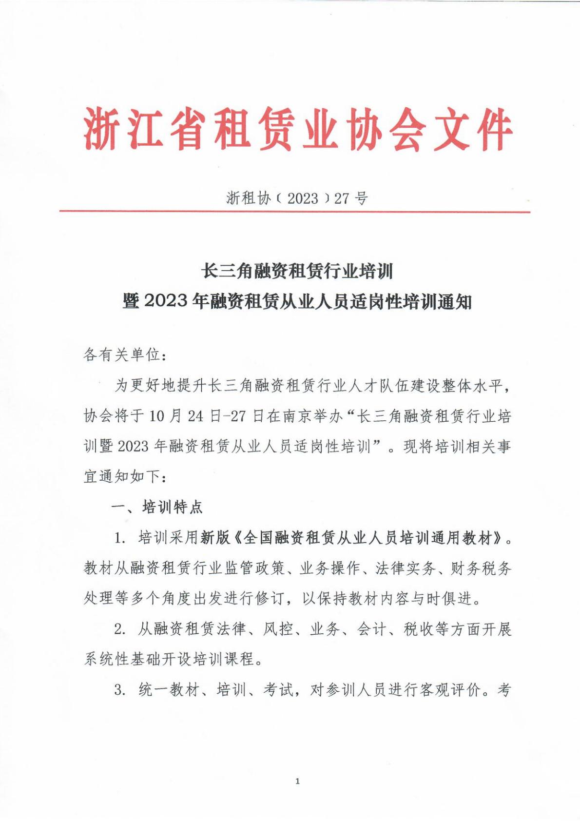 长三角融资租赁行业培训暨2023年融资租赁从业人员适岗性培训通知