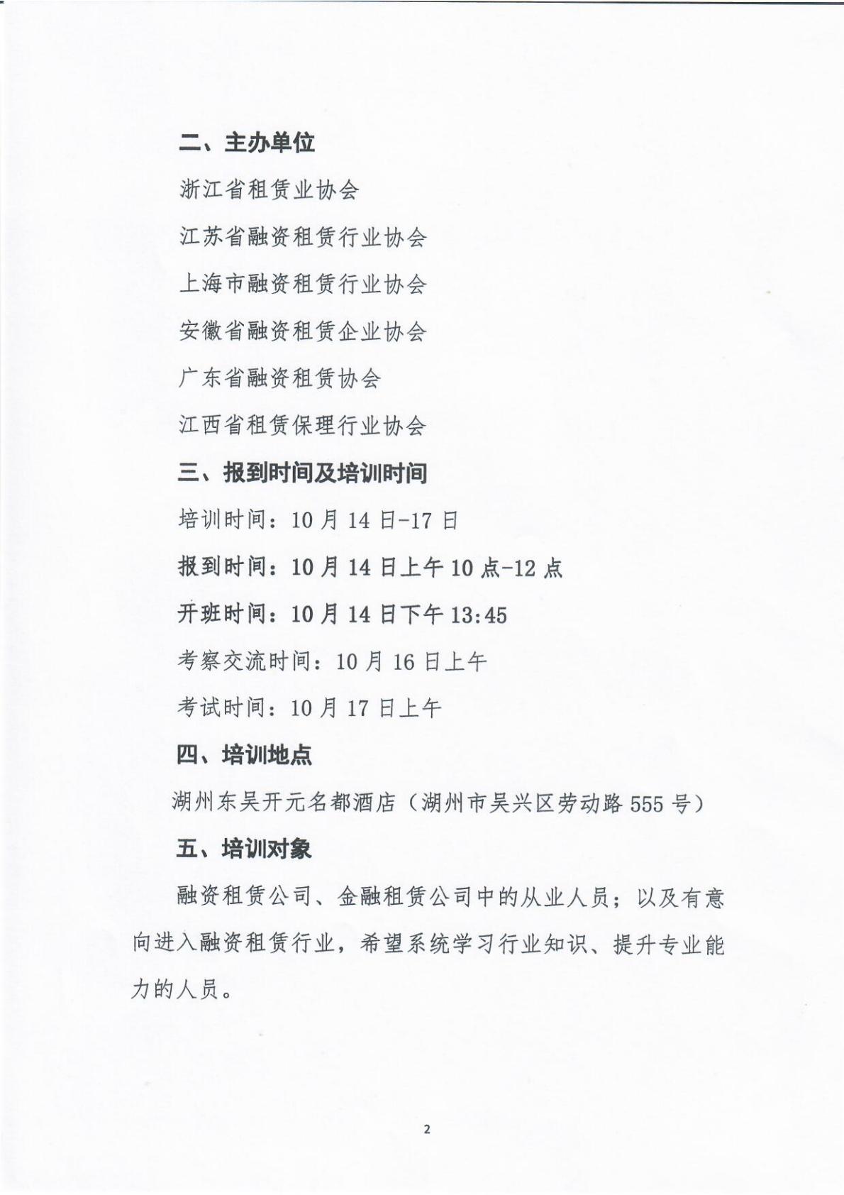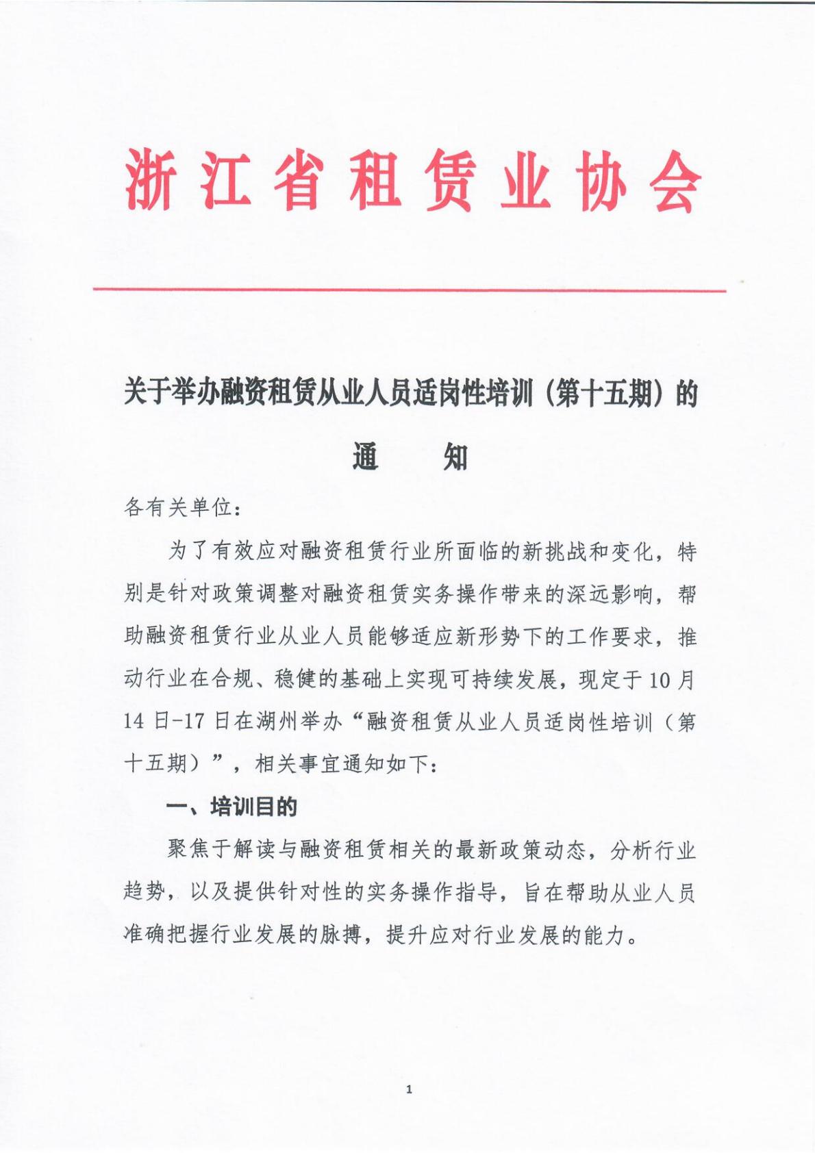 关于举办融资租赁从业人员适岗性培训(第十五期)的通知