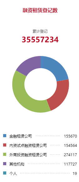 截至2026年3月底,融资租赁业务累计登记约3555.7万笔。从存量结构看,不同类型租赁公司的市场参与度存在差异: