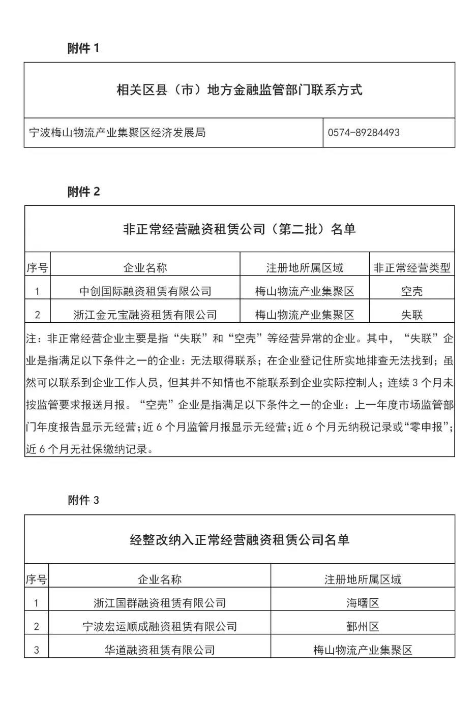 | 宁波市非正常经营融资租赁公司名单(第二批)公告 |