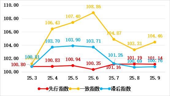 三季度整体表现 2025年三季度,浙江省融资租赁行业在宏观政策持续发力及金融“五篇大文章”深化落实的政策背景下,保持稳健发展态势。期间,行业先行指数企稳回升,一致指数延续向好趋势,滞后指数走势平稳,三大核心指数共同印证:政策与市场活力形成有效共振,行业经济系统的深层结构进一步优化,发展根基进一步巩固,为行业高质量发展筑牢数据支撑与动能根基。