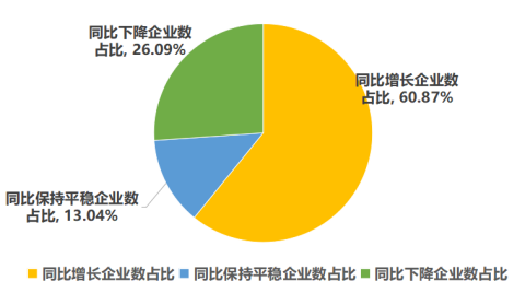 图表5 浙江省融资租赁行业一致指数2025年7-9月走势 2025年三季度,浙江省融资租赁行业一致指数保持稳健,一致指数月度值分别为104.87(7月),103.31(8月),104.46(9月)。第三季度均值较2024年同期增长0.45%,反映出浙江省融资租赁行业已步入稳步发展阶段。这释放出三重信号:一是实体经济设备更新需求的延续,为租赁业务提供坚实需求支撑;二是市场主体的消费信心稳步增强,业务扩张意愿提升;三是产业结构优化升级进程加快,进一步夯实行业发展韧性。 从主营业务收入指标来看,样本企业营收总量同比增长 27.49%,56.52%的样本企业实现主营业务收入同比正增长。该成绩得益于国家财政政策与配套金融政策的协同发力——通过支持大规模设备更新改造、以技术改造推动产业转型升级,为融资租赁行业发挥“融资+融物”特色优势创造有利政策环境,助力行业在服务实体经济中实现高质量增长。