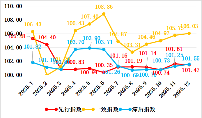 2025年四季度,浙江省融资租赁行业在服务“两重”“两新”与深化金融“五篇大文章”的政策引领下,保持稳健运行,呈现“稳中向好,动能稳固”的发展特征。从指数表现来看,先行指数延续温和回升,市场预期稳定;一致指数稳中有进,行业活跃度维持在较高水平;滞后指数走势平稳。本季度先行指数均值为101.27,一致指数均值为105.58,滞后指数均值为101.18,三大指数的季度均值较三季度均实现正向增长,反映了行业主要维度的整体协同态势。