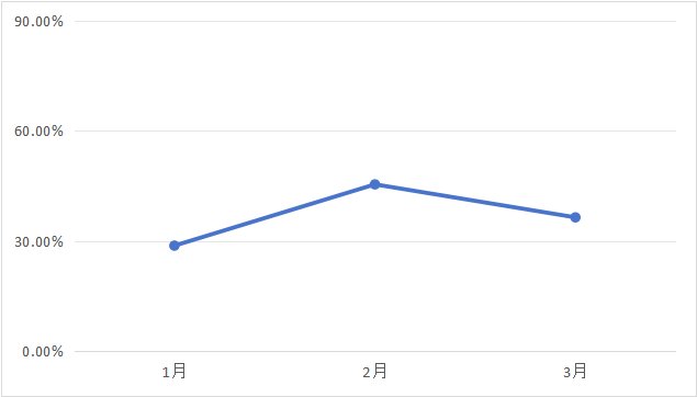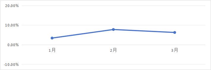 图表6 样本单位2026年一季度融资租赁资产余额同比增长率走势 从样本企业纳税数据来看,浙江省融资租赁行业税收贡献持续提升。一季度,65.22% 的企业纳税额保持平稳或实现增长。从同比数据看,1月、2月、3月同比增幅分别为28.75%、45.45%、36.46%。行业经济效益稳步向好,在履行法定纳税义务、服务地方经济发展方面发挥了积极作用。